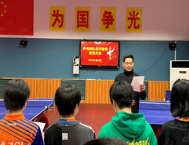 3月20日下午,乒羽学院乒乓球队举行了反兴奋剂专题学习教育,重点针对省局和学校前期检查、督查发现的问题进行集中学习教育。乒乓球队全体管理干部、教练员、队医,在校的一二三线运动员参加了学习教育。