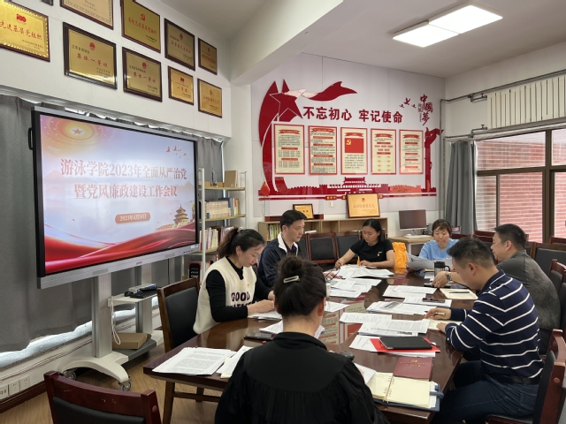 4月14日上午,游泳学院在跳水花游馆二楼会议室召开2023年全面从严治党暨党风廉政建设工作会议。学院全体管理干部参加会议。会议由学院党总支副书记(主持工作)骆晓娟主持。