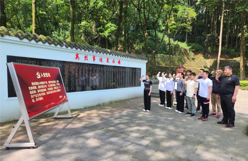 在烈士事迹简介碑前,党总支书记叶瑛带领全体党员重温了入党誓词。