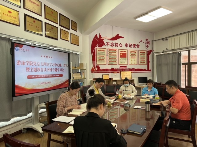根据《游泳学院党总支关于深入开展学习贯彻习近平新时代中国特色社会主义思想主题教育的工作方案》安排,5月9日上午,游泳学院党总支在跳水花游馆二楼会议室召开理论学习中心组(扩大)暨主题教育读书班专题学习会。会议由游泳学院院长王伟新主持并领学。学院全体管理干部参加学习。
