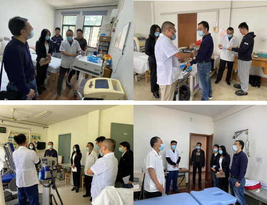 座谈之后,来访党支部一行来到队医部、门诊部,参观了解运动康复医院运动创伤特色科室的人员配备、仪器配置和业务开展情况,对运动康复医院深入开展硬件设施设备建设、有效运用冲击波治疗仪、肌骨超声、聚焦超声波治疗仪、便携式超短波、射频治疗仪、等速肌力测评训练系统、三维牵引床等国内先进康复治疗设备开展工作的成果表示了称赞,希望今后在运动创伤的诊疗和伤病康复等方面增加学习和交流的机会,更好地发挥校医院保障师生生命健康的重要作用。