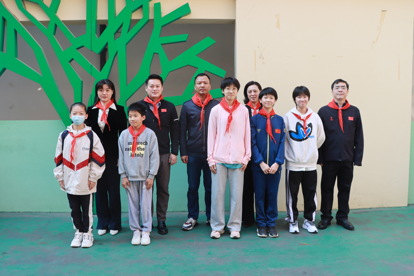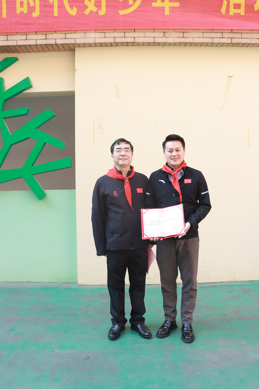 附属学校党总支书记、校长吴建华为奥运冠军陆春龙颁发德育辅导员聘书