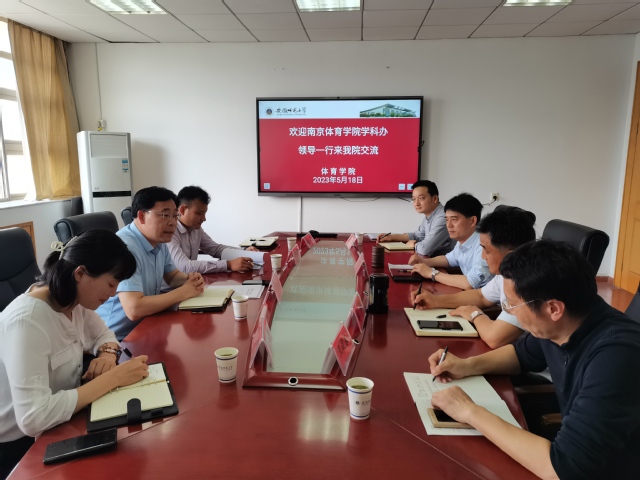 金涛对郭修金一行来院调研交流表示热烈欢迎并简要介绍了安徽师范大学体育学院基本情况。随后,双方就体育学博士学位一级学科授权点申报注意事项及安徽师范大学体育学一级学科授权点申报成功经验等进行了详细的沟通交流。