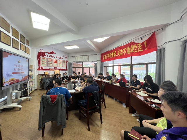 为持续深入推进学习贯彻习近平新时代中国特色社会主义思想主题教育,根据游泳学院党总支主题教育工作安排,5月26日上午,游泳学院党总支在跳水花游馆二楼会议室开展主题教育读书班专题党课,并集中观看全省主题教育专题片《嘱托·奋进》。游泳学院党总支副书记骆晓娟以《淬炼党性修养 践行使命担当》为题为学院全体党员讲授专题党课。