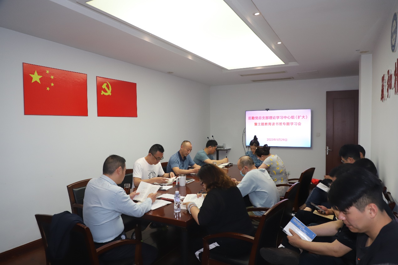 5月29日上午,后勤党总支部召开理论学习中心组(扩大)暨主题教育读书班专题学习会,后勤全体科以上干部参加会议。