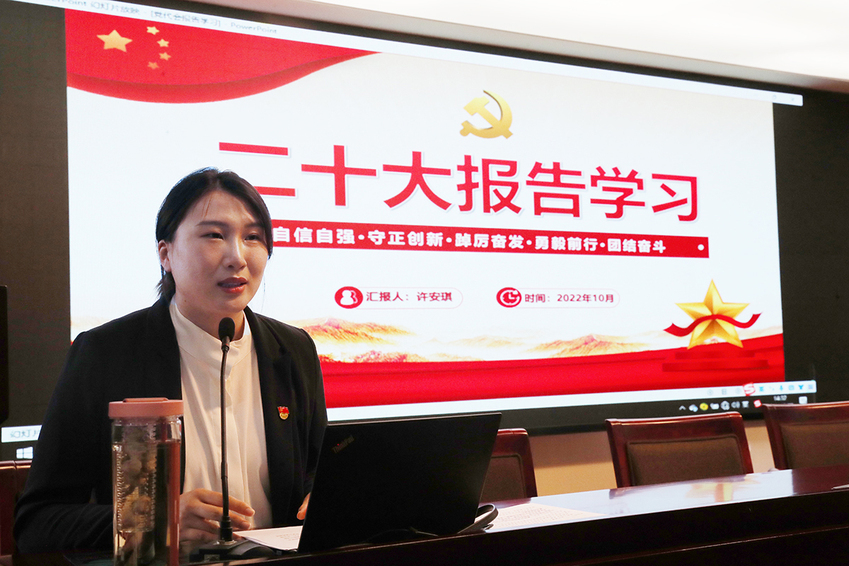 许安琪在会上作了题为《二十大报告学习》的报告,结合出席二十大的亲身经历,介绍了二十大报告的一些基本情况,并从15个方面详细阐述了报告的主要内容。她说,聆听学习党的二十大报告,使她备受鼓舞、倍感振奋,她将坚定不移听党话、跟党走,怀抱梦想又脚踏实地,努力影响带动更多青少年投身到体育强国建设中来。
