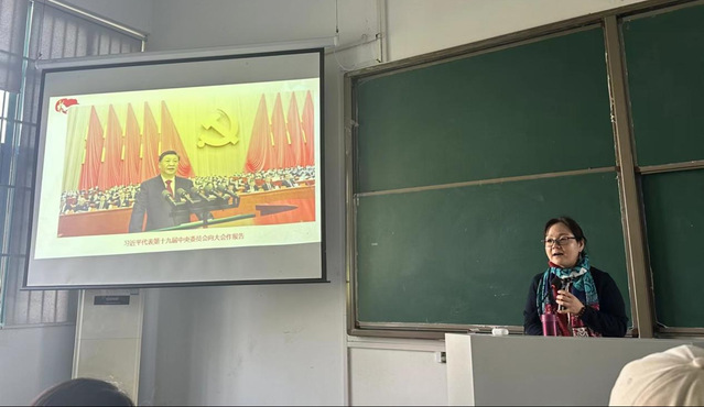 10月20日上午,马克思主义学院葛翠柏老师在《党史》课堂上,为新闻学22级1班学生讲授二十大专题思政课。葛翠柏老师以提问学生观看党的二十大开幕会感受为开场,并针对学生的疑问从习近平总书记在开幕会上报告内容的十五个方面带领学生全面、系统地了解二十大精神的内涵。并号召广大青年大学生要坚定不移听党话、跟党走,怀抱梦想又脚踏实地,敢想敢为又善作善成,立志做有理想、敢担当、能吃苦、肯奋斗的新时代好青年,让青春在全面建设社会主义现代化国家的火热实践中绽放绚丽之花。