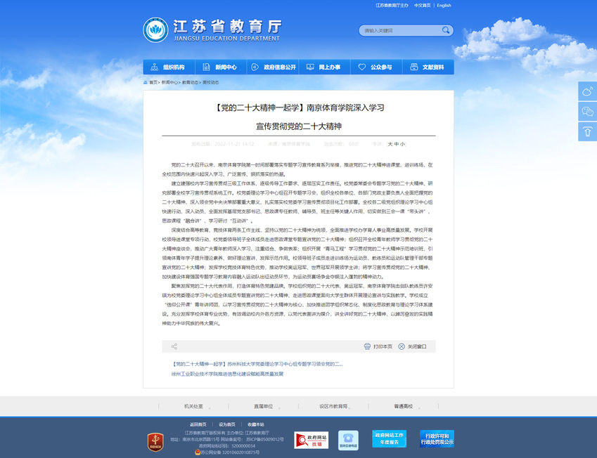 江苏省教育厅网站:【党的二十大精神一起学】PA视讯集团入口深入学习宣传贯彻党的二十大精神