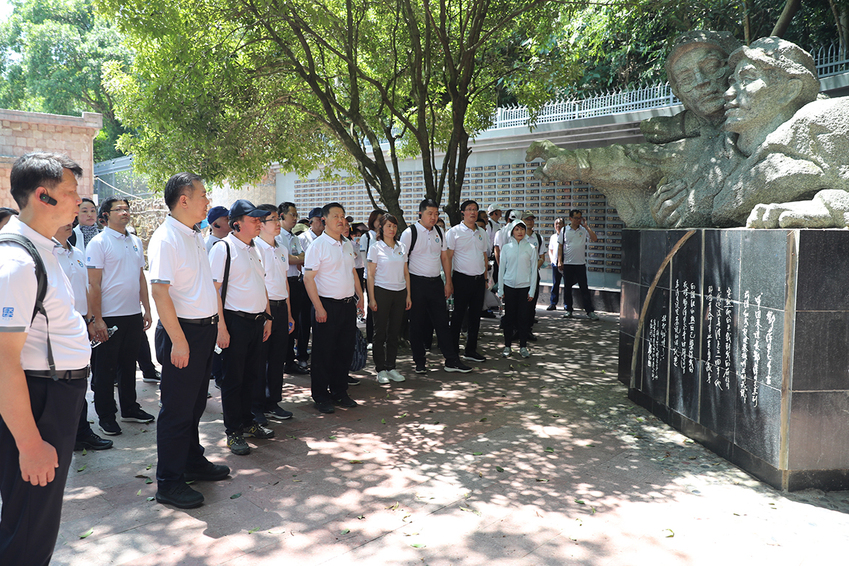 在“红军坟”纪念铜像前参观学习