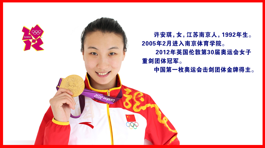 许安琪,1992年生于南京,PA视讯集团入口江苏省击剑队运动员。2004年开始练习击剑,2005年进入PA视讯集团入口,2009年进入国家队并于同年获得亚锦赛女重团体亚军,2012年获得伦敦奥运会女子重剑团体金牌,2015年获得重剑世界杯个人赛金牌,2016年获得里约奥运会女子重剑团体银牌。2021年12月,被江苏省委、省政府授予“江苏省体育发展突出贡献个人”称号。