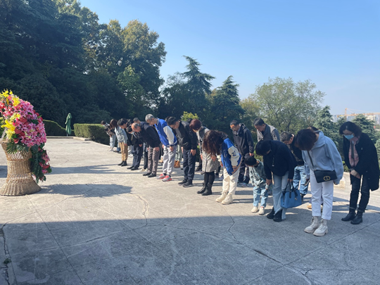 参观完纪念馆主馆,盟员们移步到航空烈士纪念碑,哀悼为国捐躯的烈士英灵。盟员们在纪念碑前鞠躬默哀,深切缅怀先烈的丰功伟绩和崇高精神。