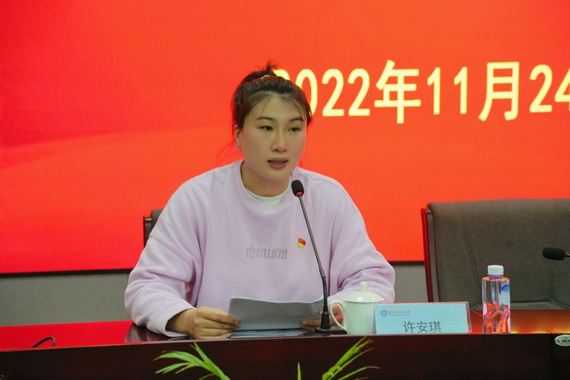 主讲人党的二十大代表、奥运冠军、PA视讯击剑队教练许安琪作了《二十大报告学习》专题报告。她结合大会主题,与大家共同回顾了十九大以来极不寻常、极不平凡的五年历程,介绍了新时代十年的伟大变革,并向大家详细阐释了坚定不移做到“六个坚持”、深入透彻理解“五个必由之路”的重大意义和时代价值。她指出,党的二十大报告高瞻远瞩,目标明确,为建设体育强国指明了方向。党的二十大报告中提出的“促进群众体育和竞技体育全面发展,加快建设体育强国”,明确了新时代新征程上我国体育人的使命任务,也为南体人扬帆起航、再立新功吹响了时代的号角。