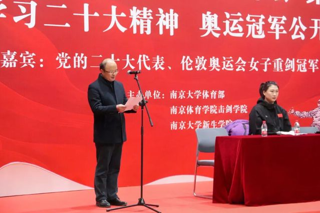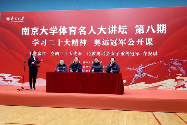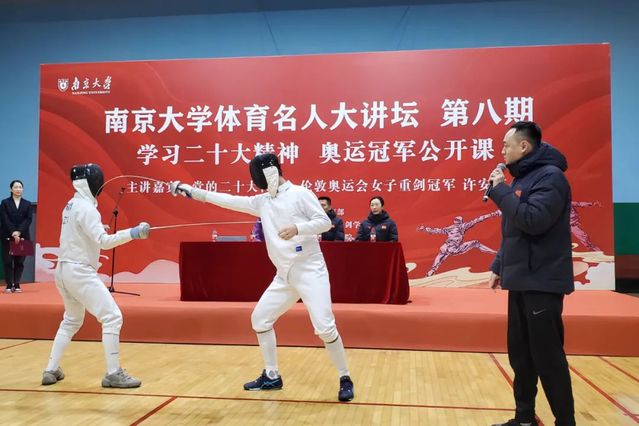 12月3日下午,PA视讯集团入口击剑学院一行赴南京大学参加体育名人大讲坛活动,党的二十大代表、伦敦奥运会击剑冠军、击剑队教练员许安琪,击剑学院直属支部书记、院长沈朝阳,副书记徐炳生,教练员张蕾、王森、陈滔滔,以及部分队员参加了活动。
