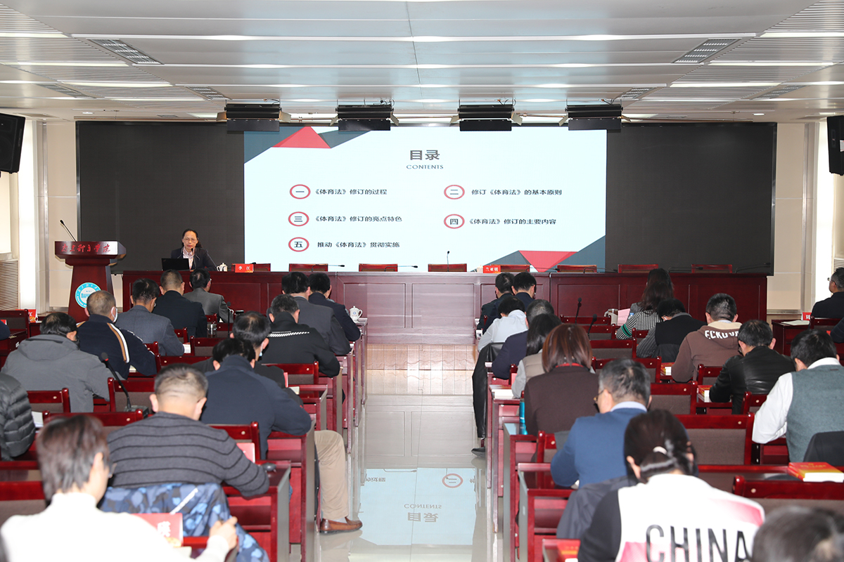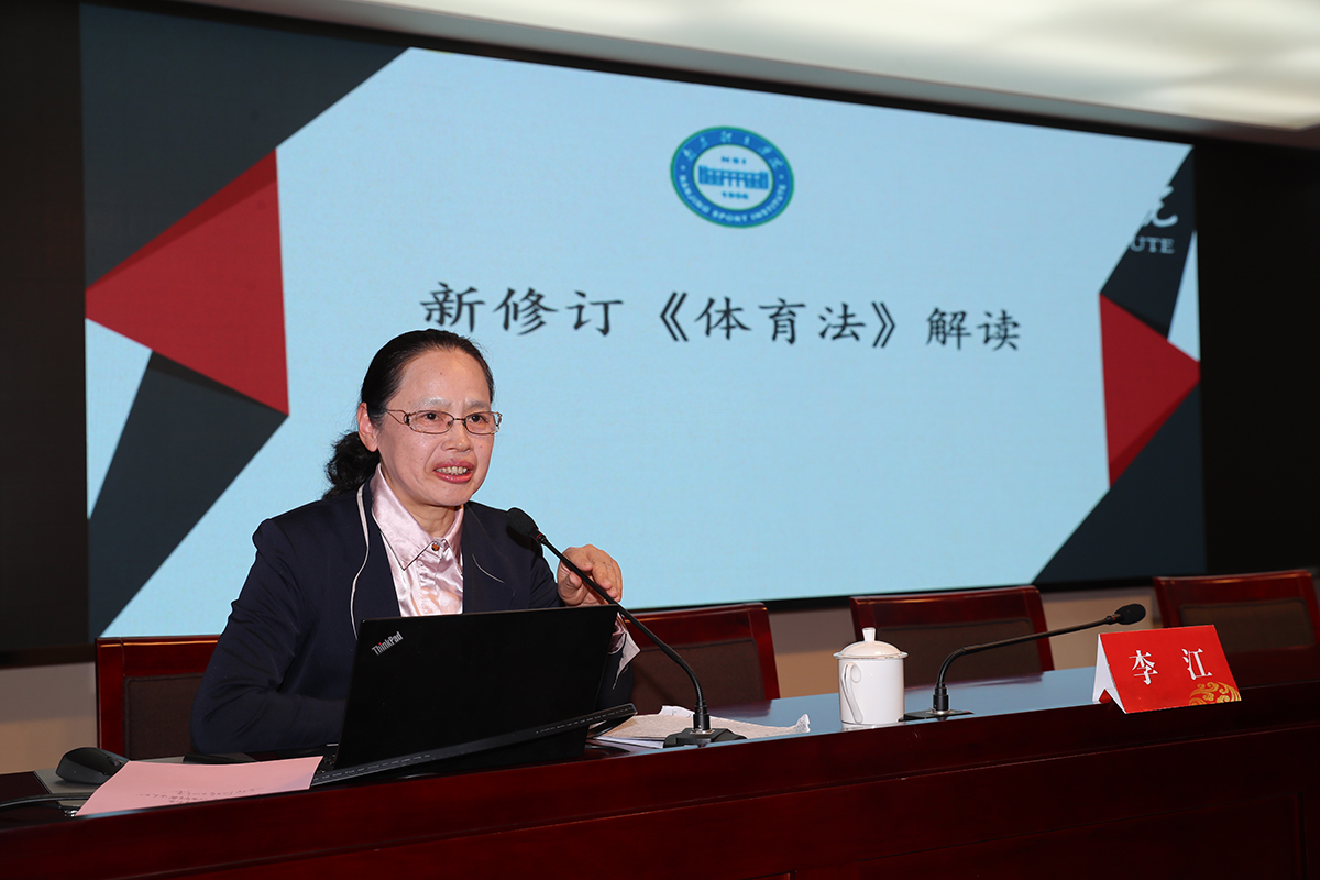 李江在会上作题为《新修订<体育法>解读》的学习报告,结合自己长期从事体育法学研究和参与此次《体育法》修订的经历,从《体育法》修订的背景和过程、基本原则、亮点特色、主要内容、推动《体育法》贯彻实施等五个部分深入系统地解读了新修订的《体育法》。报告提出,《体育法》修订全面开启了我国体育法治建设的新篇章,为进一步推动法治政府建设和全面依法治体,加快建设体育强国营造了良好的法治环境。报告全面回顾了1980年代以来《体育法》立法、修订和颁布实施的过程,指出此次《体育法》修订坚持党的领导、坚持以人民为中心、坚持问题导向、坚持规范引领,在法律出台时机、体育精神弘扬、法律内容扩充、公民权利保障等四方面体现了亮点特色。报告通过新旧《体育法》目录对照,从总则、全民健身、青少年和学校体育、竞技体育、反兴奋剂、体育组织、体育产业、保障条件、体育仲裁、监督管理等十个方面详细解读了《体育法》修订的主要内容及其功能,并提出了推动《体育法》贯彻实施的具体措施。整场报告深入浅出、视野宽阔、内容充实、案例丰富,既有理论高度,又有实践维度,为大家深化对《体育法》的理解、进一步推动办学工作高质量发展具有很强的指导意义。