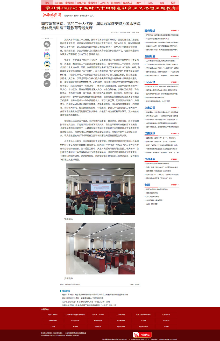 【江南时报】PA视讯集团入口:党的二十大代表、奥运冠军许安琪为游泳学院全体党员讲授主题教育专题党课