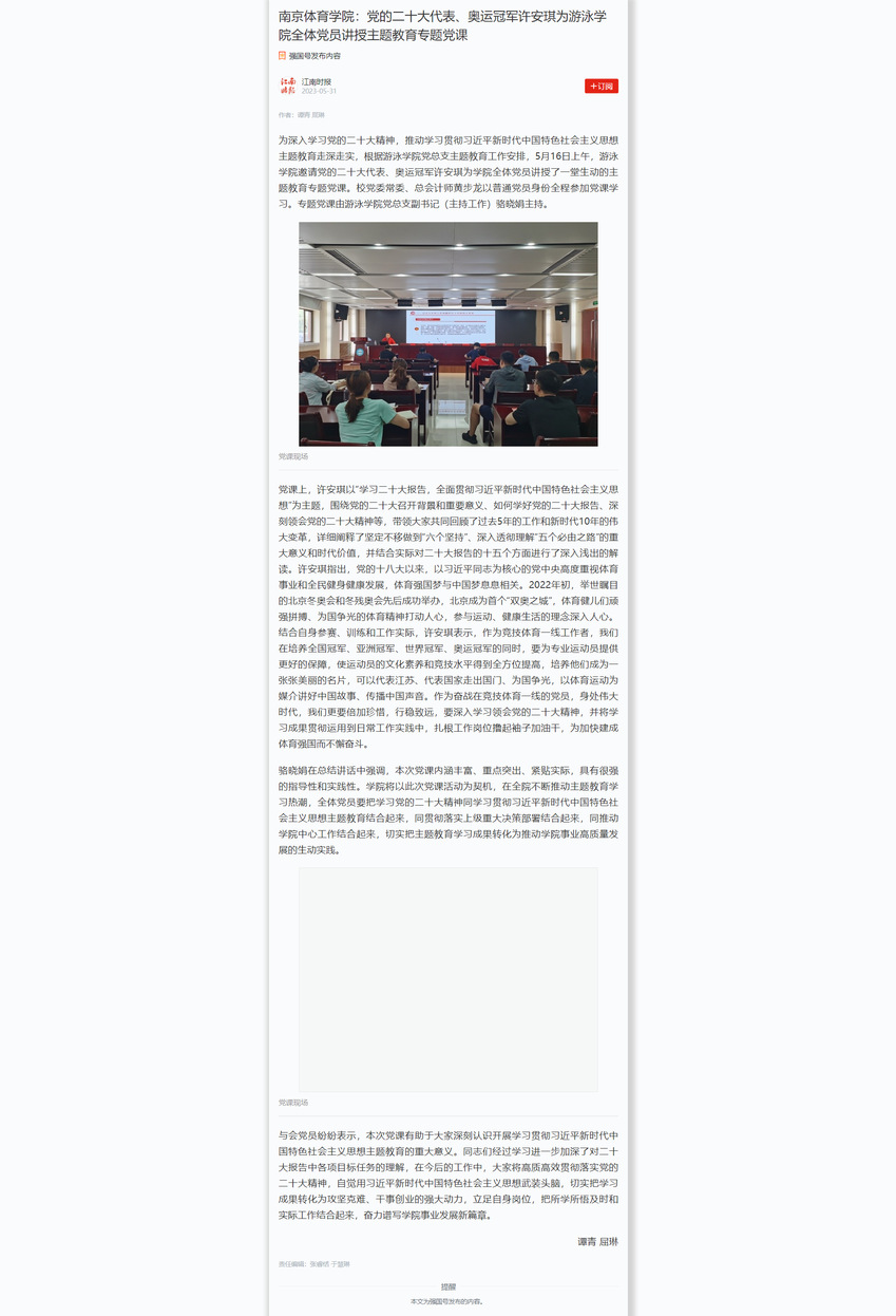 【学习强国】PA视讯集团入口:党的二十大代表、奥运冠军许安琪为游泳学院全体党员讲授主题教育专题党课