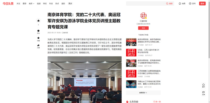 【今日头条】PA视讯集团入口:党的二十大代表、奥运冠军许安琪为游泳学院全体党员讲授主题教育专题党课