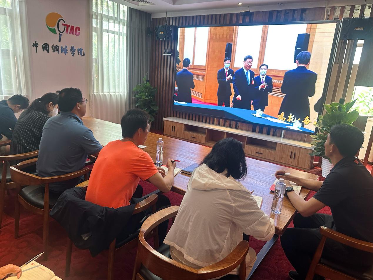 观看结束后,网球学院直属党支部书记唐存楼向全院党员同志发出号召,要求全体党员干部:一要更加紧密地团结在以习近平同志为核心的党中央周围,以习近平新时代中国特色社会主义思想为指导,按照习近平总书记赋予江苏的新使命新任务,牢牢把握新发展阶段的任务要求;二要坚定理想信念,做到一心一意投身党的事业,一言一行体现党的要求,一举一动听从党的号令,以实际行动诠释对党绝对忠诚;三要坚守入党初心,保持党员本色,踏实做好本职工作;四要坚持理论学习,切实做到学深、悟透、践行;五要坚持在思想上、行动上融入网球学院这个大家庭,听从指挥,团结同志,为学院的高质量发展贡献力量。