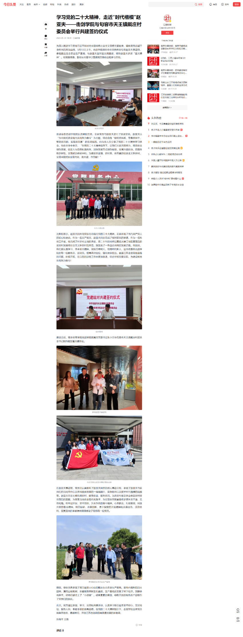 【今日头条】学习党的二十大精神,走近“时代楷模”赵亚夫——击剑学院与句容市天王镇戴庄村委员会举行共建签约仪式