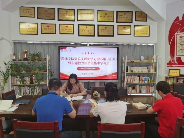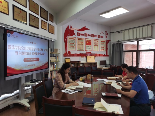 根据《游泳学院党总支学习贯彻习近平新时代中国特色社会主义思想主题教育专题读书班工作计划》安排,6月7日上午,游泳学院党总支在跳水花游馆二楼会议室召开理论学习中心组(扩大)暨主题教育读书班第七次集中学习会。会议由游泳学院党总支副书记骆晓娟主持。游泳学院党总支纪检委员叶雷雷领学,全体管理干部参加学习。