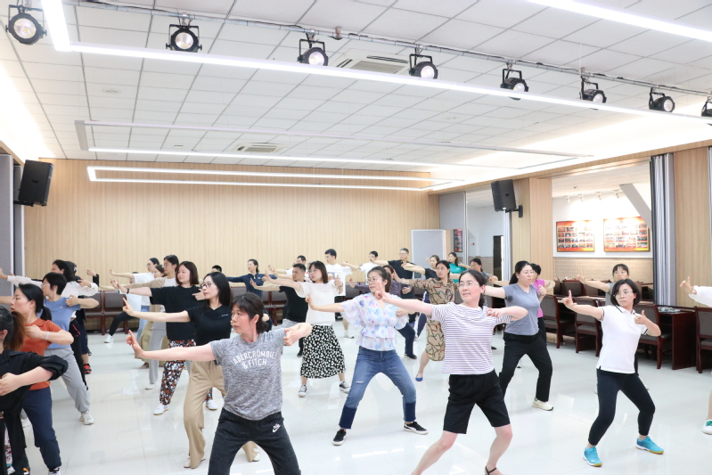 为提高PA视讯教职工健康水平、防治慢病,丰富业余文化生活,为PA视讯建设和发展提供人才健康保障和支持,6月13日中午,由校工会主办、武术与艺术学院分工会承办的八段锦学习班第一期在校工会职工之家开班。校各分工会会员近40人参加培训。校工会主席张健主持开班仪式。