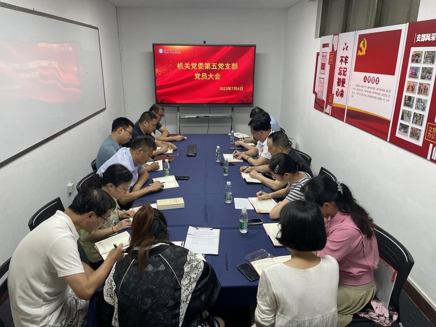 7月6日上午,机关党委第五党支部在图书馆117室召开支部党员大会。会议由支部书记叶强主持,支部全体党员参加会议。