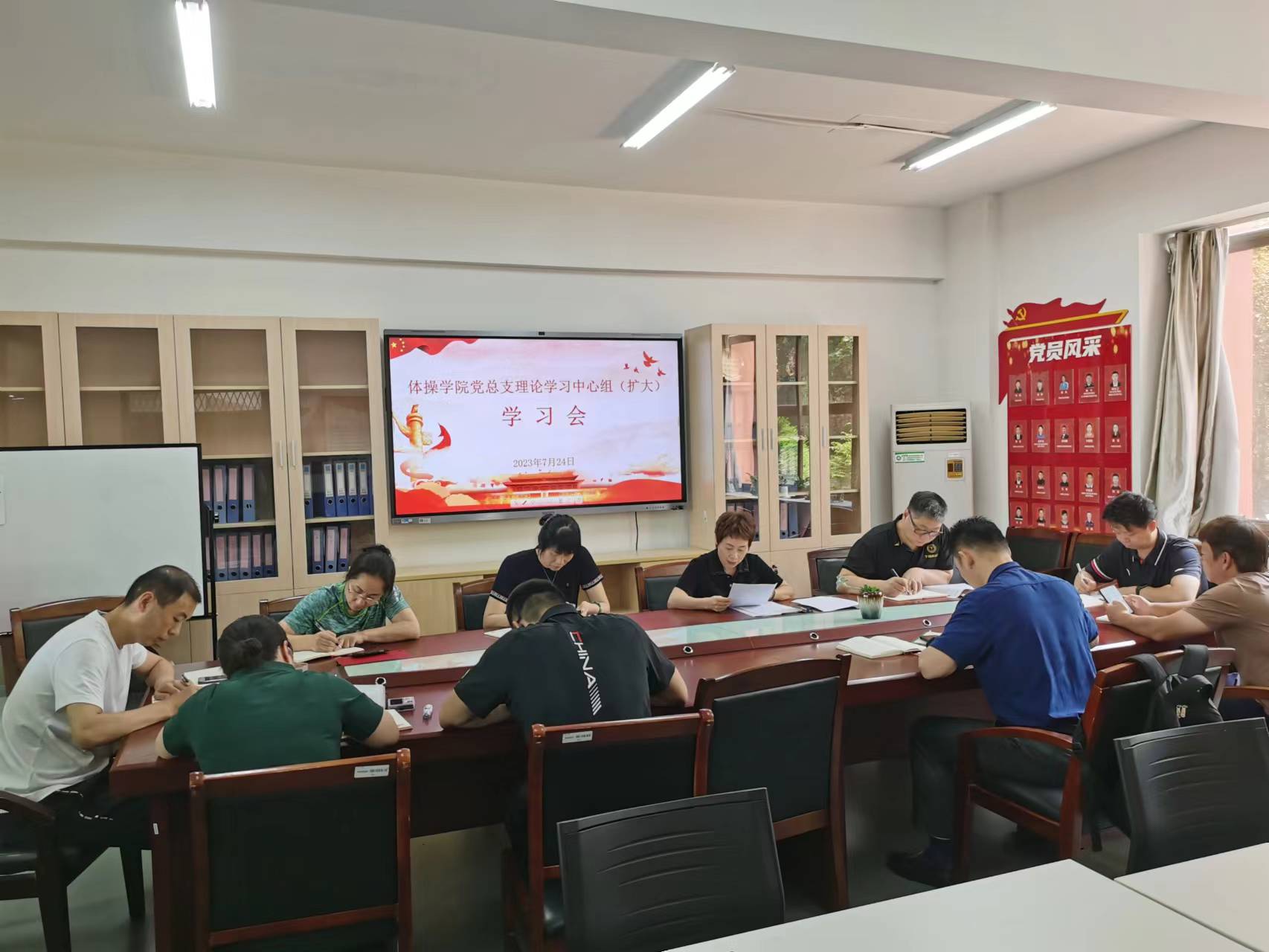 在全党深入开展学习贯彻习近平新时代中国特色社会主义思想主题教育之际,7月24日上午,体操学院党总支理论学习中心组(扩大)召开集体学习会议,深入学习习近平总书记在江苏考察时的重要讲话精神。党总支书记叶瑛主持学习会。