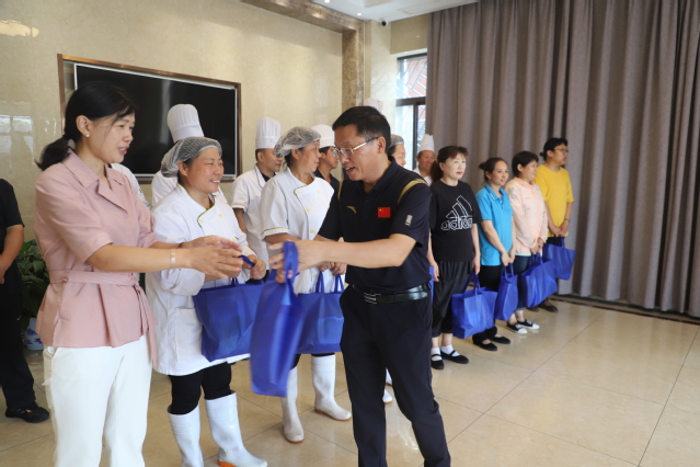 黄步龙高度肯定了后勤工作人员冒着酷暑有序推进暑期工作的担当作为精神,并向一线工作人员表示感谢和慰问。他强调,南体环境优美,体育氛围浓厚,后勤人继承发扬南体精神,不畏高温酷暑有条不紊地推进各项保障工作,为学校竞技体育等各项事业发展做出了有力的保障,希望大家在今后工作中要进一步提高服务意识、提升服务质量,做好服务保障工作;同时,后勤工作人员在工作中也要做好暑期的个人安全防护,确保安全生产工作。