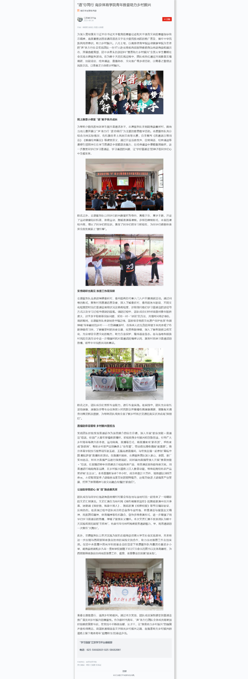 【中国江苏网】:“语”你同行 PA视讯集团入口青年推普助力乡村振兴