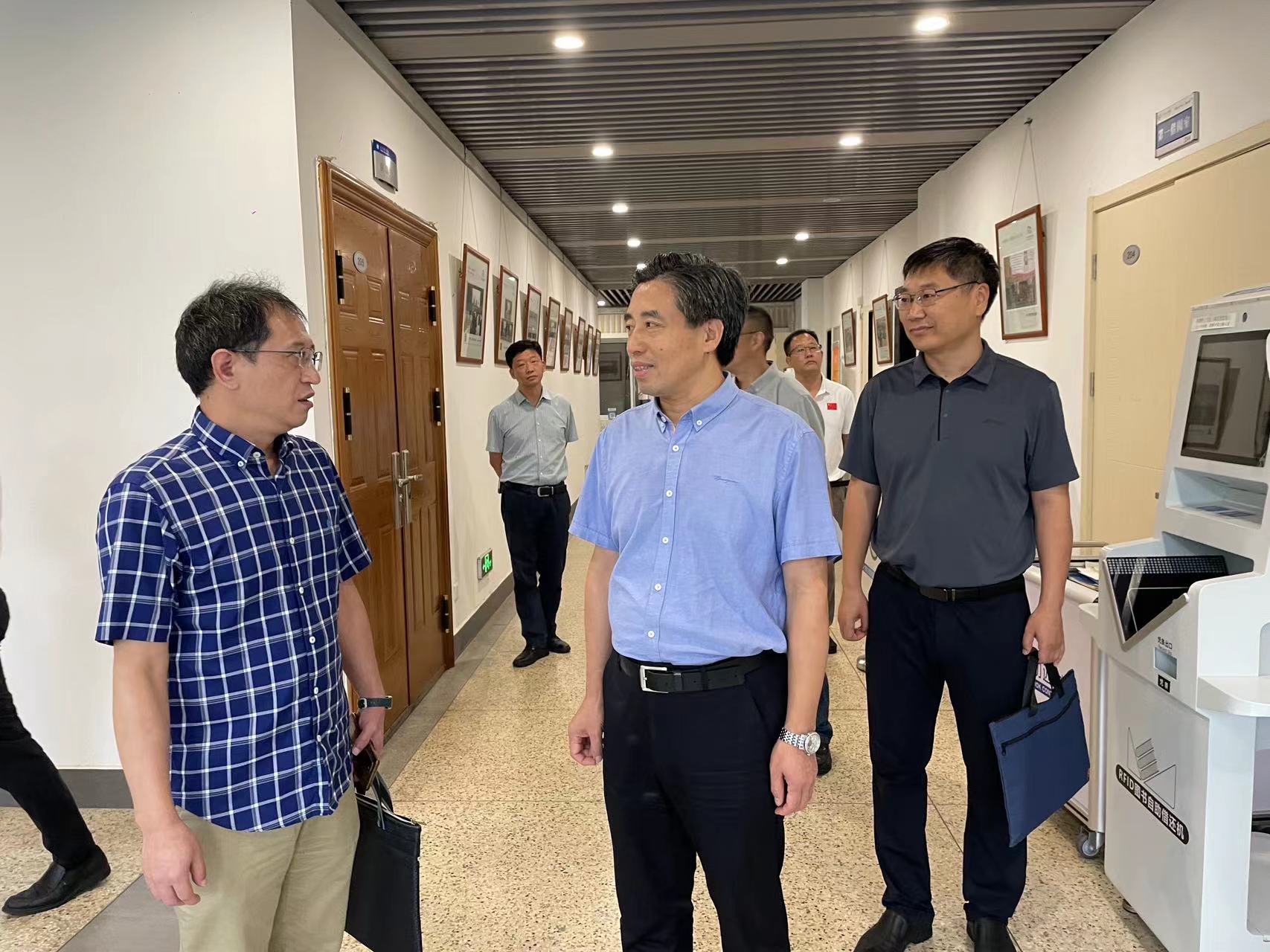 刘红明一行现场走访了各处室办公室、协同创新中心资料室、图书馆阅览室、档案室综合库房、体育大数据中心机房、公共教学机房等设施场所。