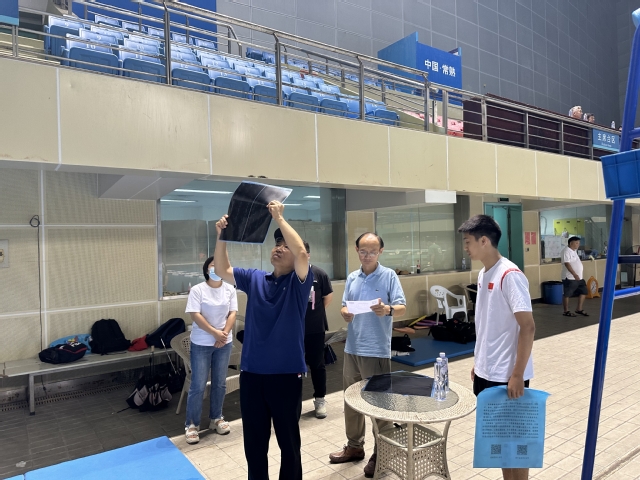 当天下午三点整,跳水队在转训地常熟举行了第一届学青会决赛赛前第一次专项测验,此次测验邀请了国际级裁判刘战、国家级裁判温伟霞等前来执裁、指导、分析,并采用国内最高赛事的标准给运动员们进行评分。刘健全程观摩并对下一阶段训练工作的改进和提高提出建议要求。刘健指出,此次测验是以实战检验学青会决赛备战成效的重要途径,全体队员精神状态饱满,较好地发挥了平时的训练水平,呈现出了良好的竞技状态和精神风貌,圆满达到了预期效果。他对队伍提出了三点要求,一是及时做好总结。要根据裁判员们的点评,深入总结测试赛中存在的问题,认真查找问题差距,明确改进措施和方法,有针对性地去加强和改善。二是提高动作质量。要对标国家队,利用转训现有条件,进一步细抠动作技术细节,以更高标准、更严要求打牢每日基本功训练,做到精益求精。三是加强协同配合。要高效发挥复合型团队力量,提升训练实效,以更加坚定的决心和信心全力备战接下来的学青会决赛,力争在学青会上取得优异成绩。