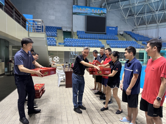 在看望队伍过程中,王家祥、王鸿在训练场地详细了解了运动员伤情、用药及队医工作情况,并现场为运动员进行会诊、治疗。杨宁欣向全体跳水队转训教练员送上慰问品,并进一步了解了转训队伍伙食方面的需求。