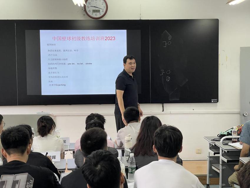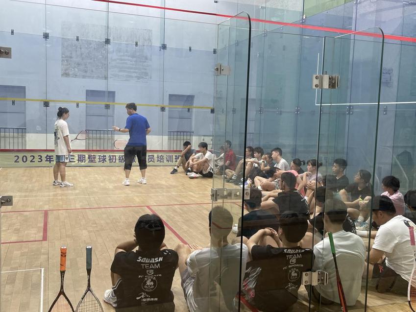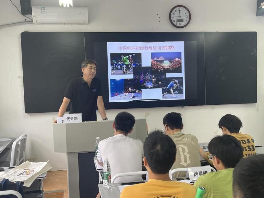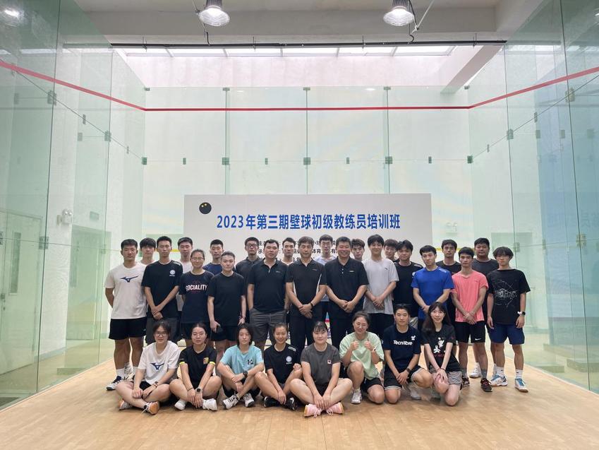 9月14日,2023年全国第三期壁球初级教练员培训班在PA视讯集团入口举行。体育产业与休闲学院壁球专项教师参与了培训工作。