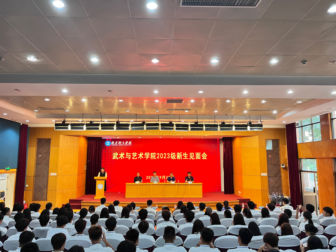 9月22日下午,武术与艺术学院于图书馆第一报告厅举行了2023级新生见面会。武术与艺术学院党政班子成员,系(办)负责人,2023级辅导员、班主任,以及2023级全体新同学参加见面会。会议由2023级辅导员马高曼主持。
