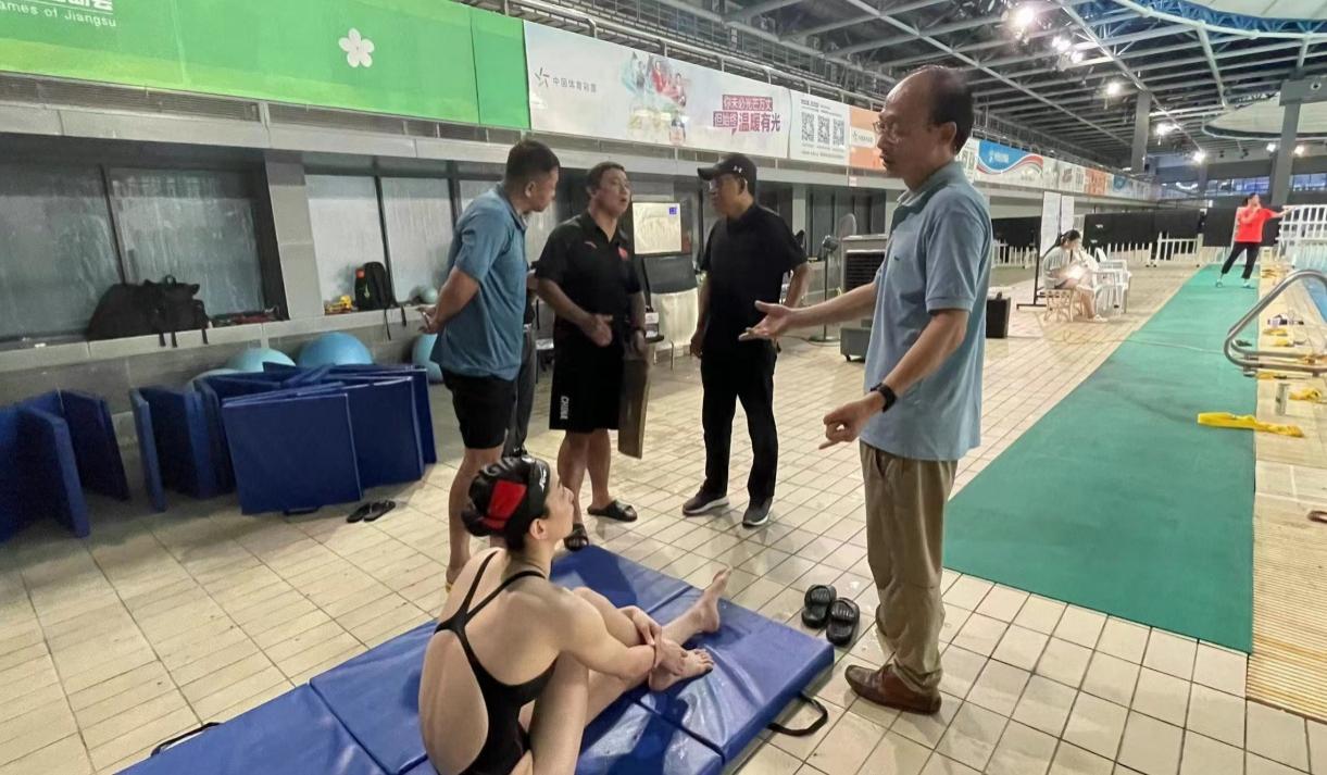 根据游泳学院跳水队重点运动员伤病的会诊需求,9月20日下午,运动康复医院和队医部负责人赴扬扬州市体育运动学校转训的花样游泳队实地给与运动员巡诊、会诊,同时,看望随队医生,继续开展医院党支部组织的“送药、送诊、送温暖”活动。