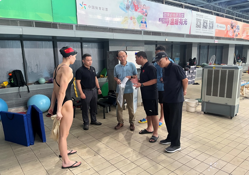 王家祥和王鸿还仔细问询了队医和科医保障团队人员工作生活中的困难,同时要求队医恪守本职,严格把握反兴奋剂关口,确保药源性兴奋剂零容忍,发扬医者仁心精神,一如既往地把医疗工作做细做实,切实保证外训队伍每位队员的身心健康,尽心尽力,保驾护航。花游队员在泳池里奋力掀起的每一朵浪花都离不开包括队医在内的所有工作人员的用心浇灌。