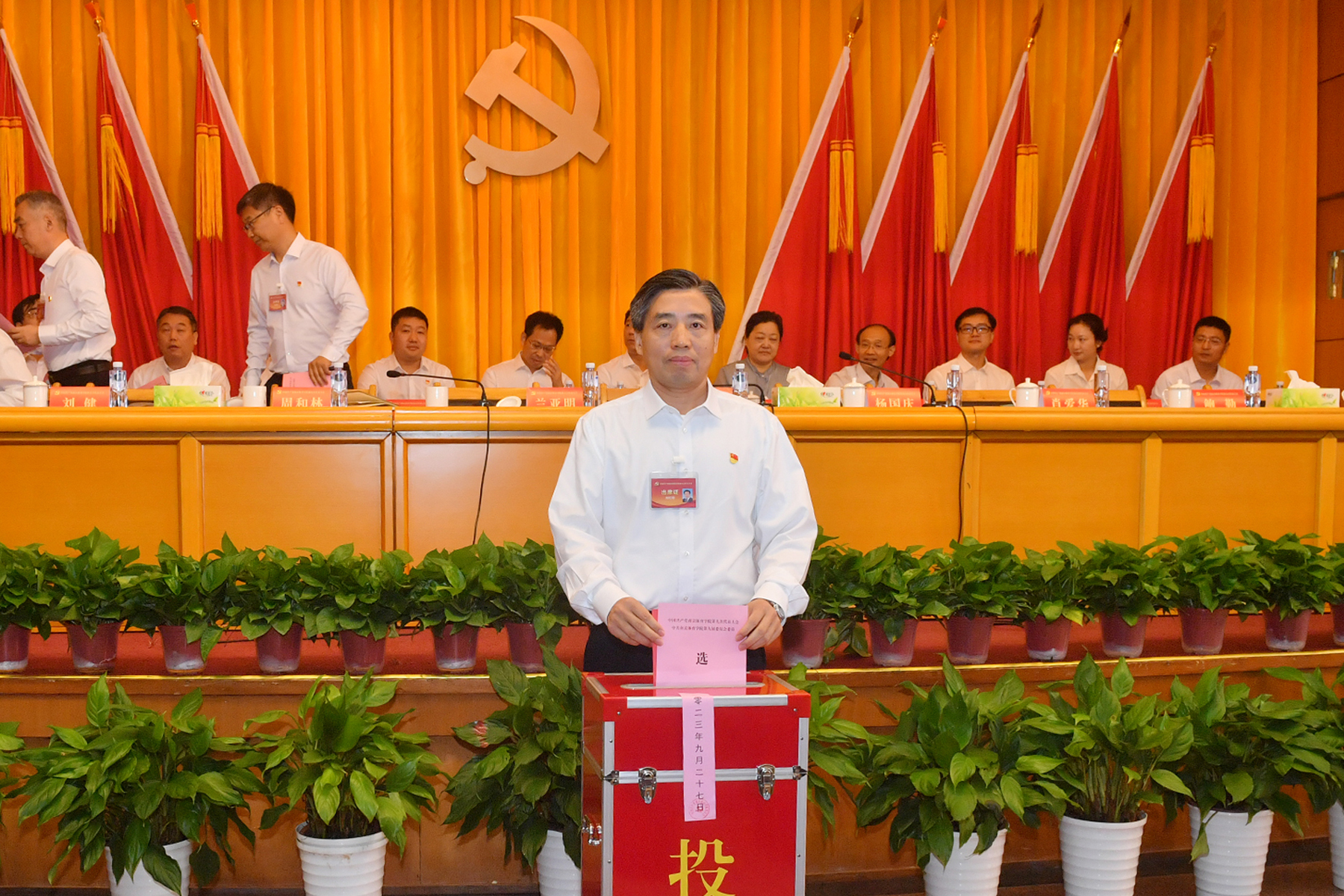 在总监票人和监票人监督下,到会代表以无记名投票方式,选举出由23名委员组成的中共PA视讯集团入口第九届委员会,选举出由7名委员组成的中共PA视讯集团入口第九届纪律检查委员会,并经大会主席团第四次会议确认。兰亚明宣读了第九届委员会和纪律检查委员会组成名单。