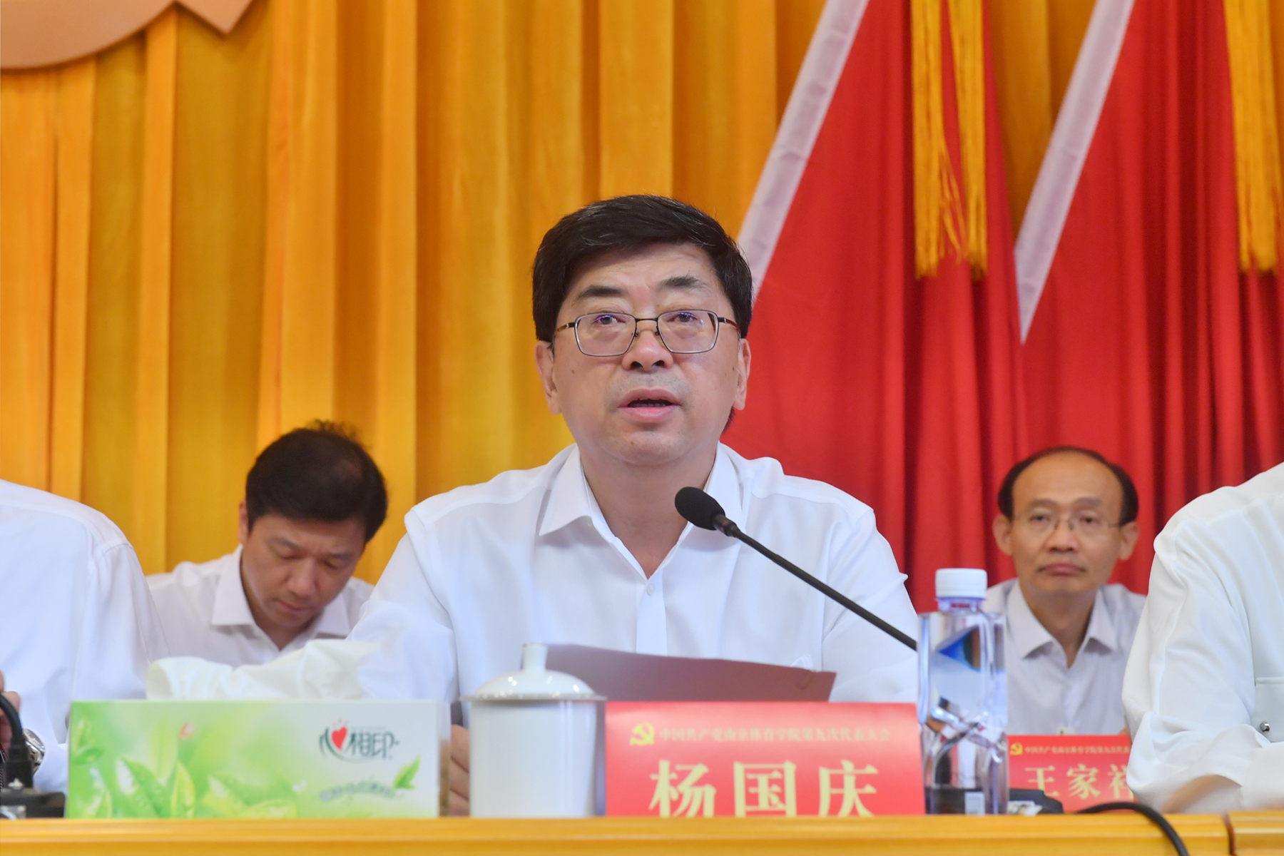 大会执行主席刘红明、杨国庆、兰亚明、肖爱华、周和林、鲍勤、刘健、陈爱国、许立俊、王猛、殷怀刚、丁永亮、陈蕾、唐存楼、王家祥、王进、卢奎、吴建华、骆晓娟、吴晓明、彭国强在主席台就座。杨国庆主持会议。省委组织部换届工作督导组副组长李一宁及有关同志出席大会。
