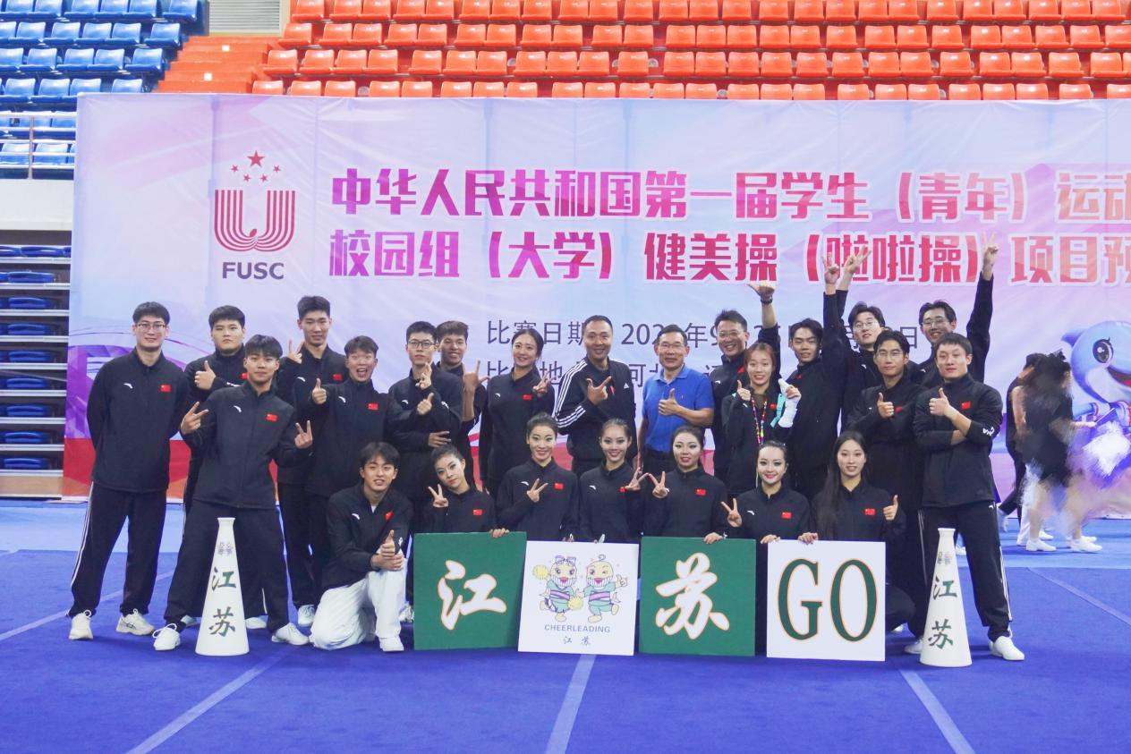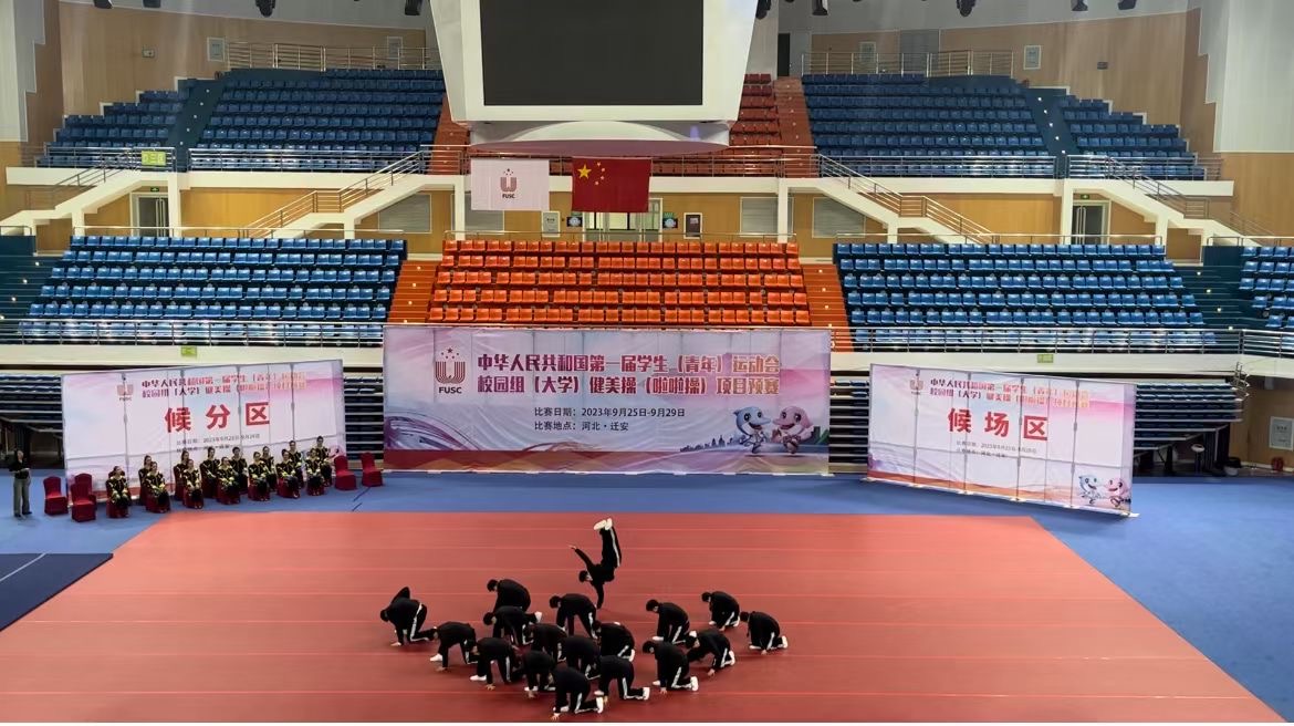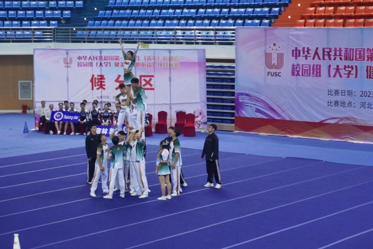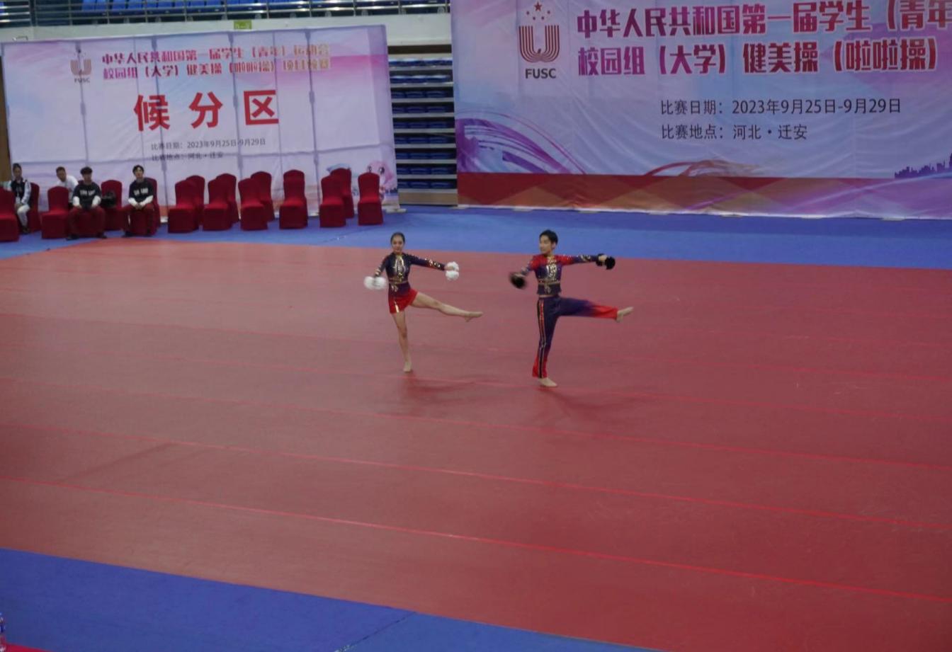 9月30日,历时5天的中华人民共和国第一届学生(青年)运动会大学组啦啦操项目的预赛在河北迁安落下帷幕,PA视讯集团入口的20名学生在武术与艺术学院院长支川、表演系副主任王连睿以及教练员程宇老师、蒋敏馨老师的带领下,代表江苏省参加比赛。本次比赛共有来自全国27个省(市)高校的近500名学生参加,高手云集,盛况空前。在激烈的角逐下,PA视讯参加的啦啦操5个项目全部顺利晋级,挺进11月份第一届全国学生(青年)运动会(校园组)大学生健美操(啦啦操)项目决赛。