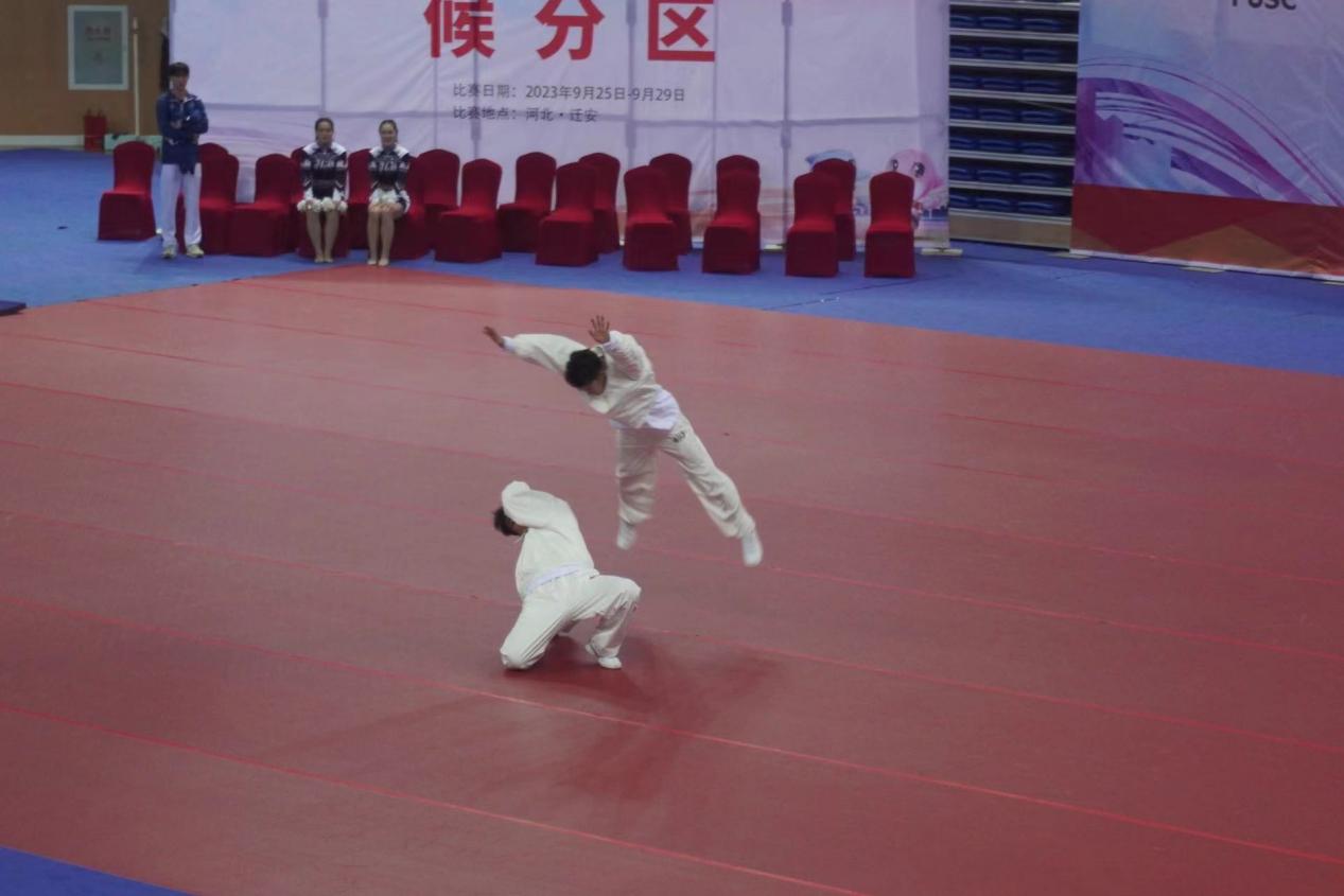 28日下午,进行了双人花球与双人街舞的比赛。其中由PA视讯武术与艺术学院大四学生张兆瑞和张逸曦组成的双人花球项目,以中国风的成套风格,在21支队伍中位列第8名。双人街舞共20支队伍,PA视讯武术与艺术学院大四学生张骏和王博龙压轴出场,以娴熟的配合、高超的难度,获得第4名的好成绩。