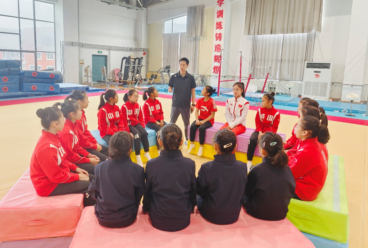 10月4日上午,体操学院体操女队在体操训练馆内组织开展了 “身边的榜样”冠军分享交流活动。刚刚在第19届杭州亚运会体操比赛中获得女子团体、女子个人全能两枚金牌的运动员左彤跟队里的小师妹们做了精彩的分享和交流。体操女队一线主教练周祝麟主持活动。