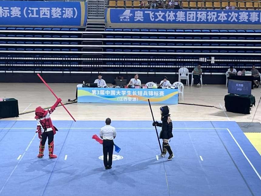 9月17日至23日,由中国大学生体育协会主办的第3届中国大学生长短兵锦标赛在江西婺源体育中心举行。本次比赛是目前同类竞赛中规模最大、影响最广、最具影响力的大型赛事。共有来自北京体育大学、华东师范大学、河南大学、华南师范大学等42所高校,近400名运动员同台竞技。