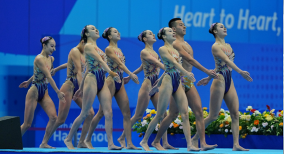 杭州亚运会花样游泳集体项目比赛由集体技巧自选、集体技术自选和集体自由自选三套动作组成,三套动作得分相加后最高者获得冠军,比赛压力更大、不确定性更高。