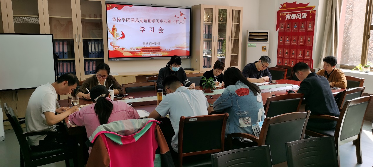 10月9日上午,体操学院党总支召开理论学习中心组(扩大)学习会,党总支书记叶瑛主持会议,全体管理干部参加学习。本次学习共分两个阶段。