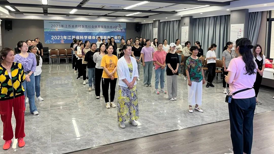 PA视讯承办2023年江苏省农村女性社会体育指导员培训工程在省内各地陆续展开,目前南通、镇江、淮安、徐州、连云港、常州、无锡、宿迁等市的50余个行政村,近千名女性社会体育指导员参与到培训当中。