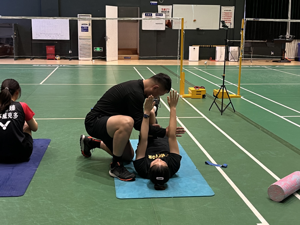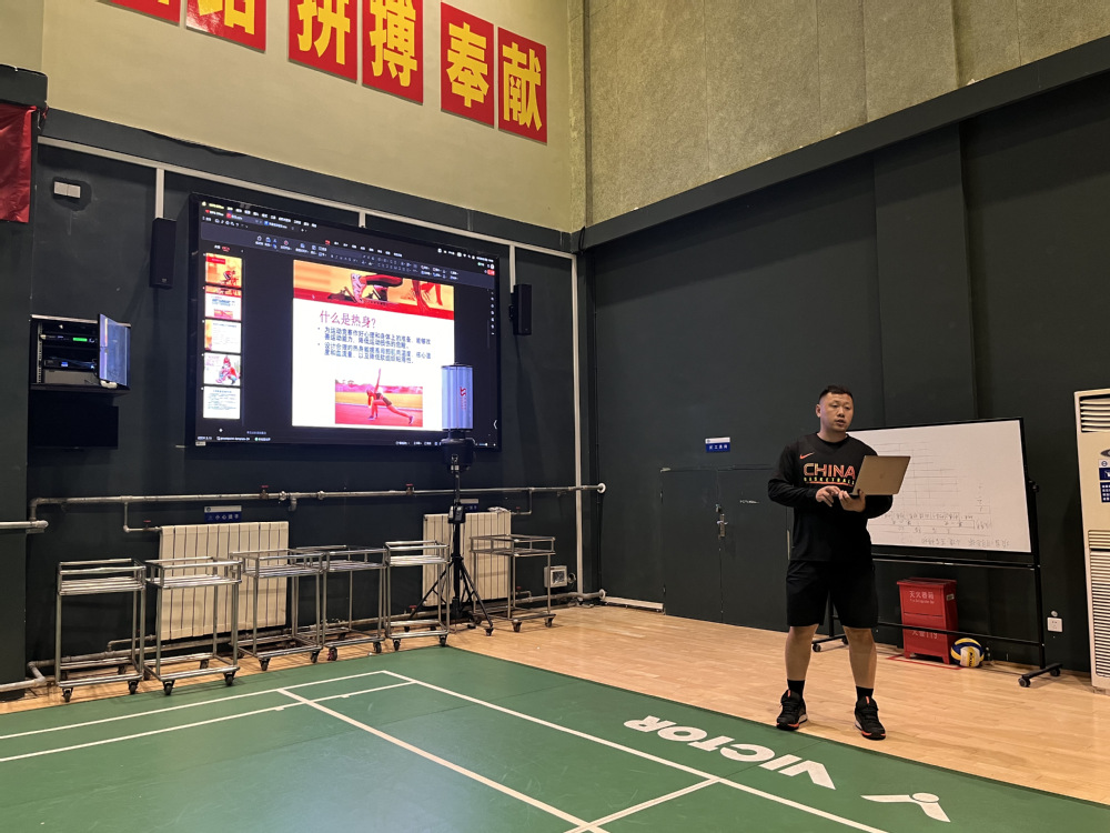 下午3:00,在北羽毛球馆,学训融合中心徐懋华教练在羽毛球女队进行了一场题为《赛前体能专项准备》的体能公开课。体能公开课与教学实验公开课是PA视讯学训融合专项活动的内容之一,不定期进行展示。徐懋华教练承担省羽毛球女队的日常体能训练工作,此次公开课包含理论与实操两部分,徐教练分别进行了理论讲解和实操展示。