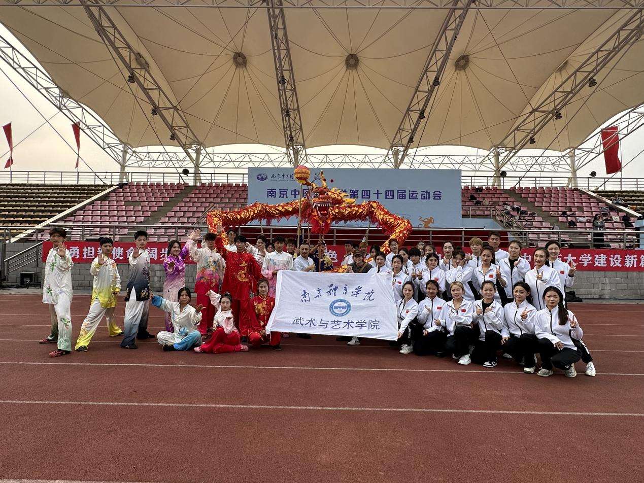 10月20日上午,南京中医药大学第四十四届运动会在仙林校区正式拉开帷幕。作为党建共建单位,武术与艺术学院受南京中医药大学体育部邀请,由武术系教师刘靖、舞蹈系教师吴文君带队出席此次开幕式活动,并表演原创武术节目《舞龙舞狮》、《八段锦》与舞蹈《奔跑的青春》,助兴开幕式。