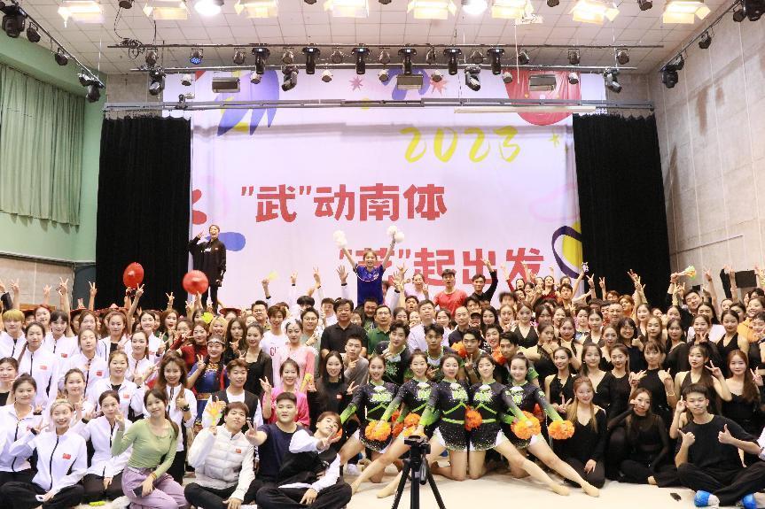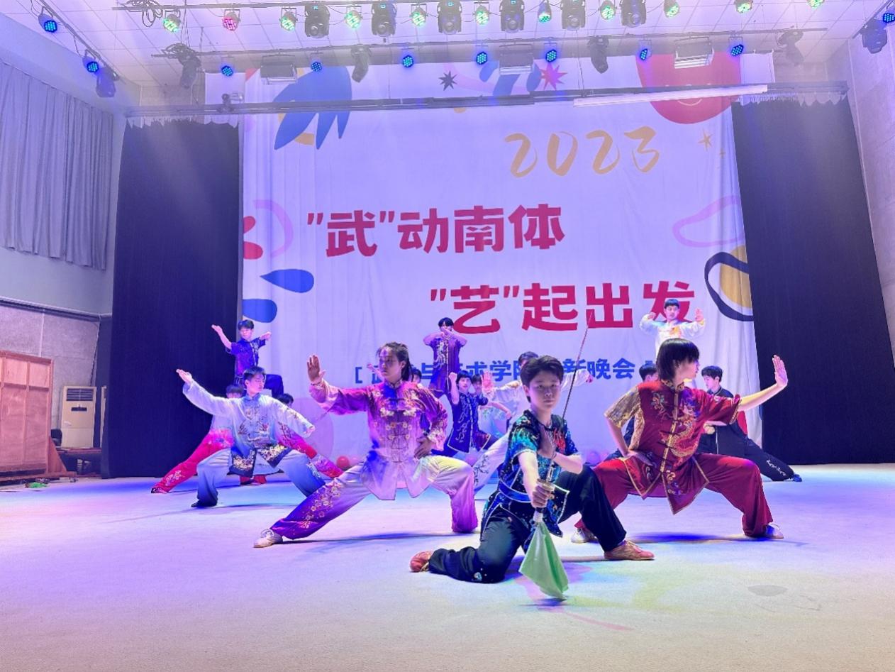 10月19日晚,武术与艺术学院“‘武’动南体,‘艺’起出发2023迎新生晚会”在体育馆二楼舞蹈房举行。武术与艺术学院全体教师和2023级新生一起观看晚会。