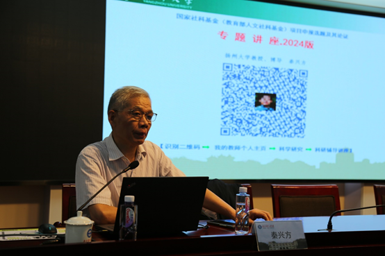会后,秦兴方教授以《国家社科基金(教育部人文社科基金)项目申报选题及其论证》进行了专题辅导。