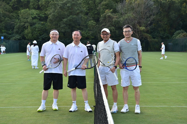 开幕式结束后,“六省一市”网球运动协会的运动员们在草地球场展开了激烈的比赛。